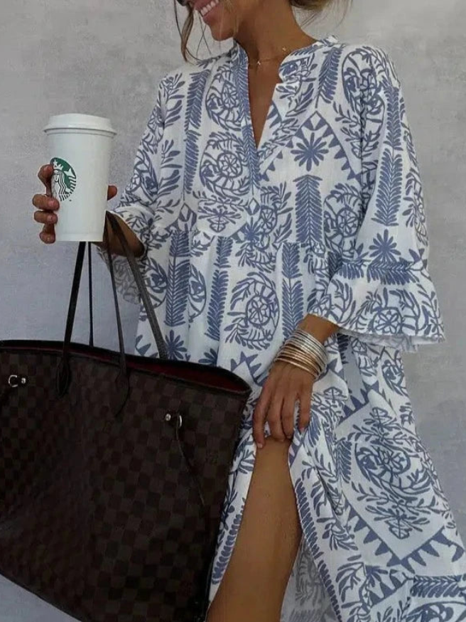 The Amelia Casual Smock Dress is your go-to for a relaxed yet elegant look that transitions effortlessly from casual to cocktail-ready. With a flattering V-neck and classic long sleeves, it’s crafted for comfort and style in every setting.