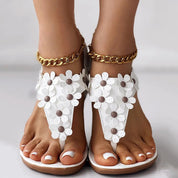 Floral Design: Stylish flat sandals with a cute floral accent for summer flair.