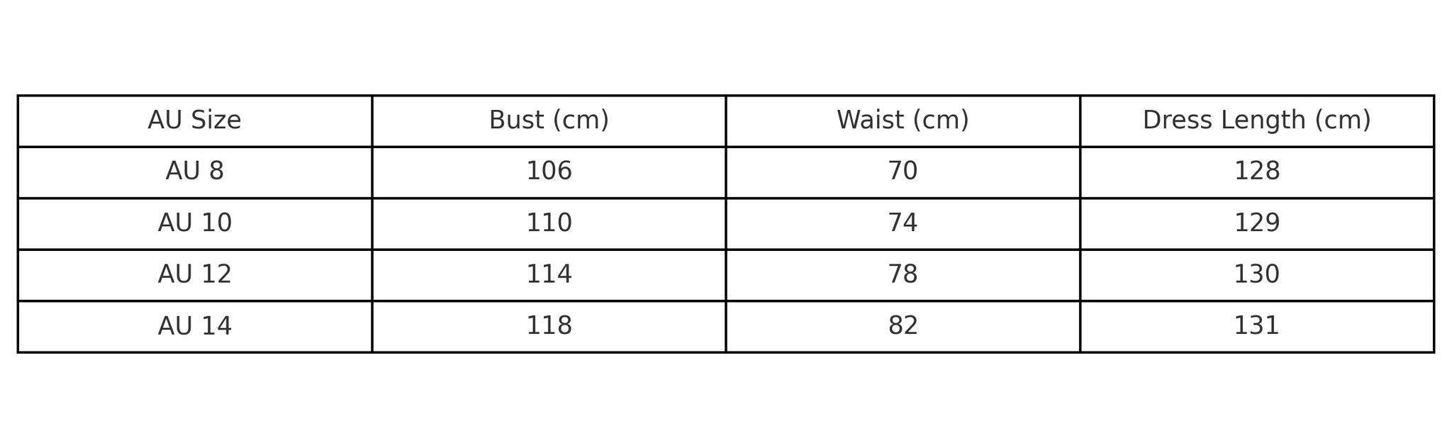Our sizes are in Australian sizes, so please check the size chart for reference. If you're unsure or between two sizes, we recommend choosing the larger size.