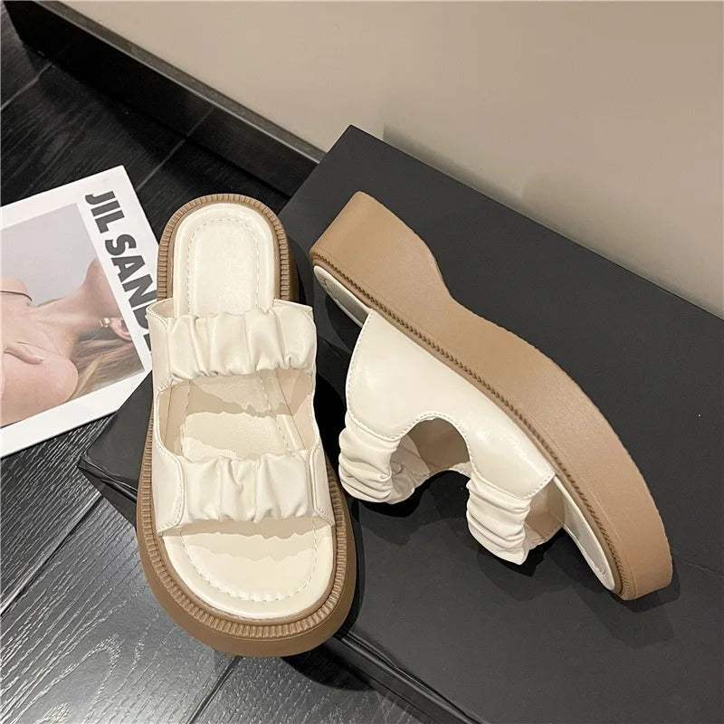 Elevate your summer style with the Fiona Platform Sandals for Women. Crafted with soft leather straps and a chic platform sole, these sandals offer both sophistication and all-day comfort. The platform design provides added height without sacrificing stability, making them perfect for both casual outings and dressier occasions. Whether you're enhancing your everyday wardrobe or stepping out for a special event, these stylish platform sandals are a must-have for any summer look.