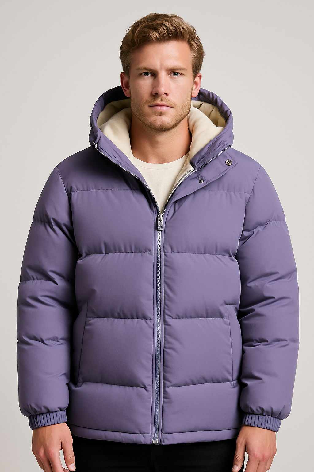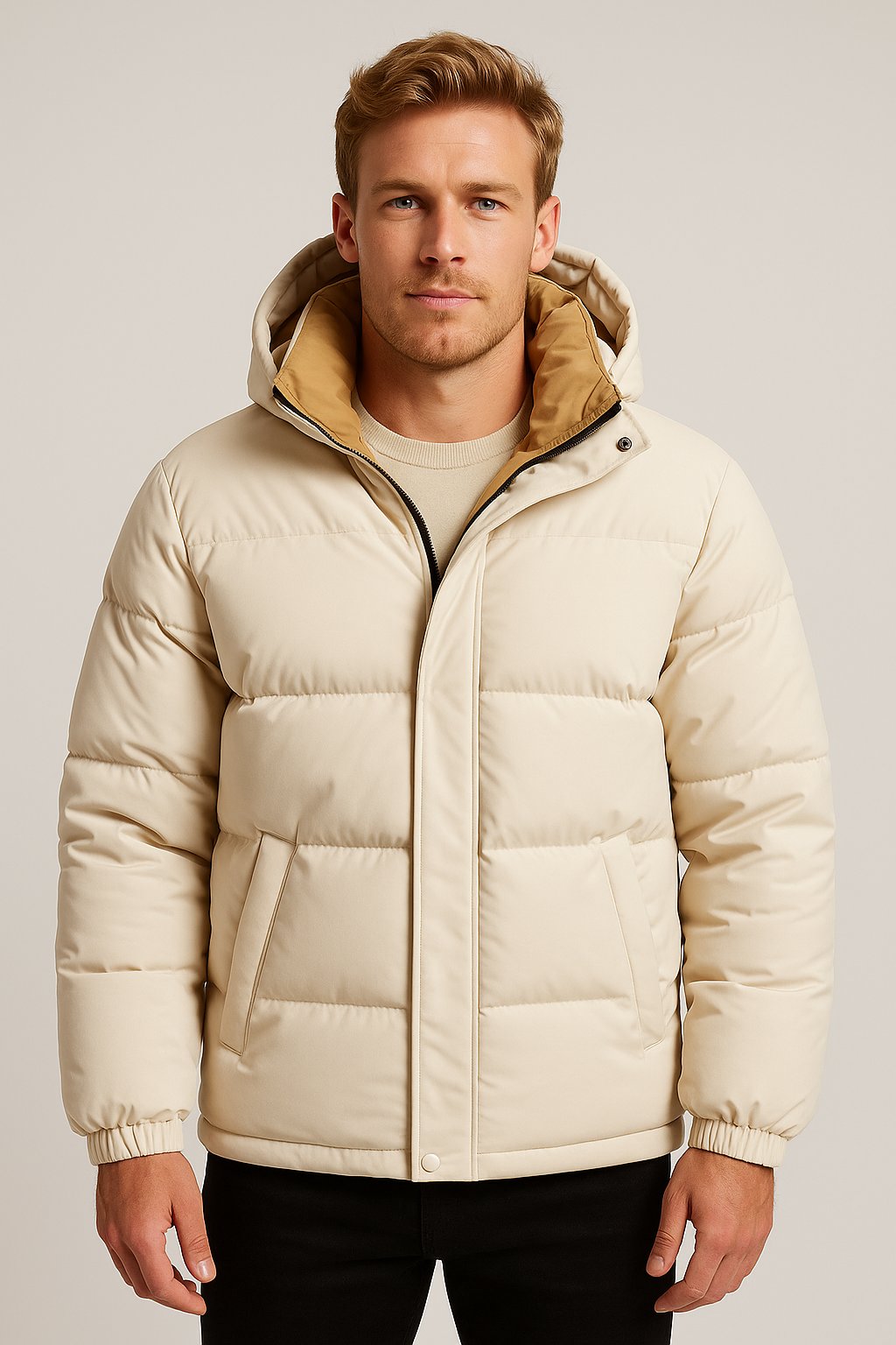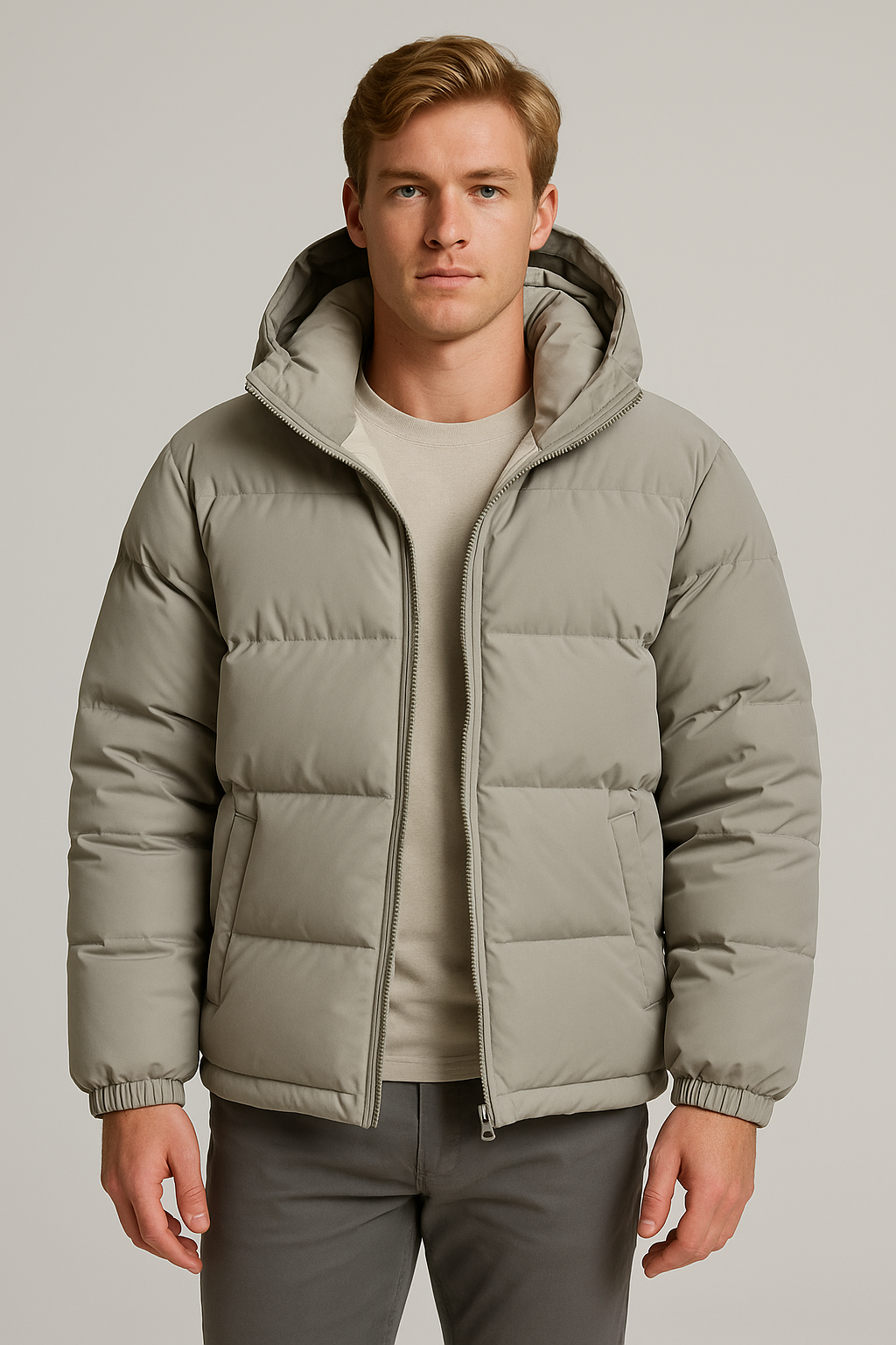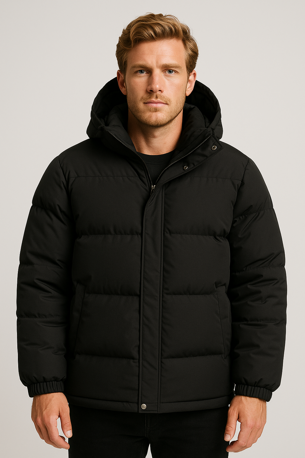 Men's Hooded Classic Puffer Jacket - Insulated Winter Coat for Cold Weather