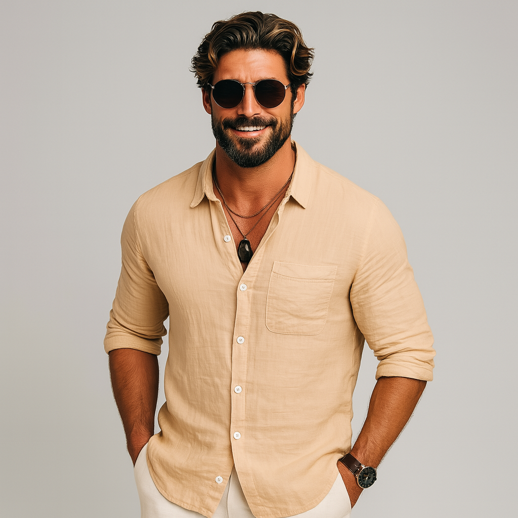 Men's Linen Shirt - Lightweight Summer Casual Top for Comfort and Style