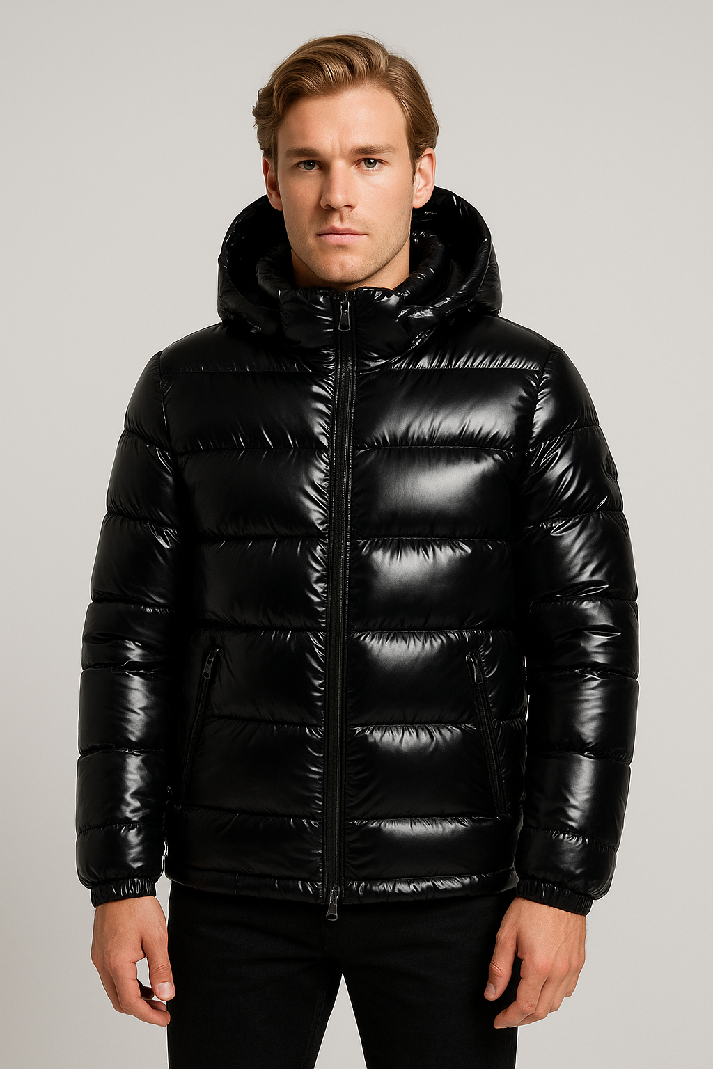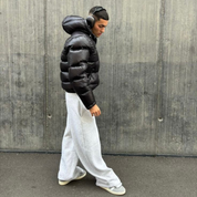 The Shiny Puffer Jacket combines ultimate warmth with contemporary style. Its sleek, glossy black exterior offers a modern twist on the classic puffer design, making it an ideal choice for both cold weather and urban environments. This jacket features a cozy hood, a zippered front, and convenient side pockets, ensuring comfort and practicality while keeping you fashionable.