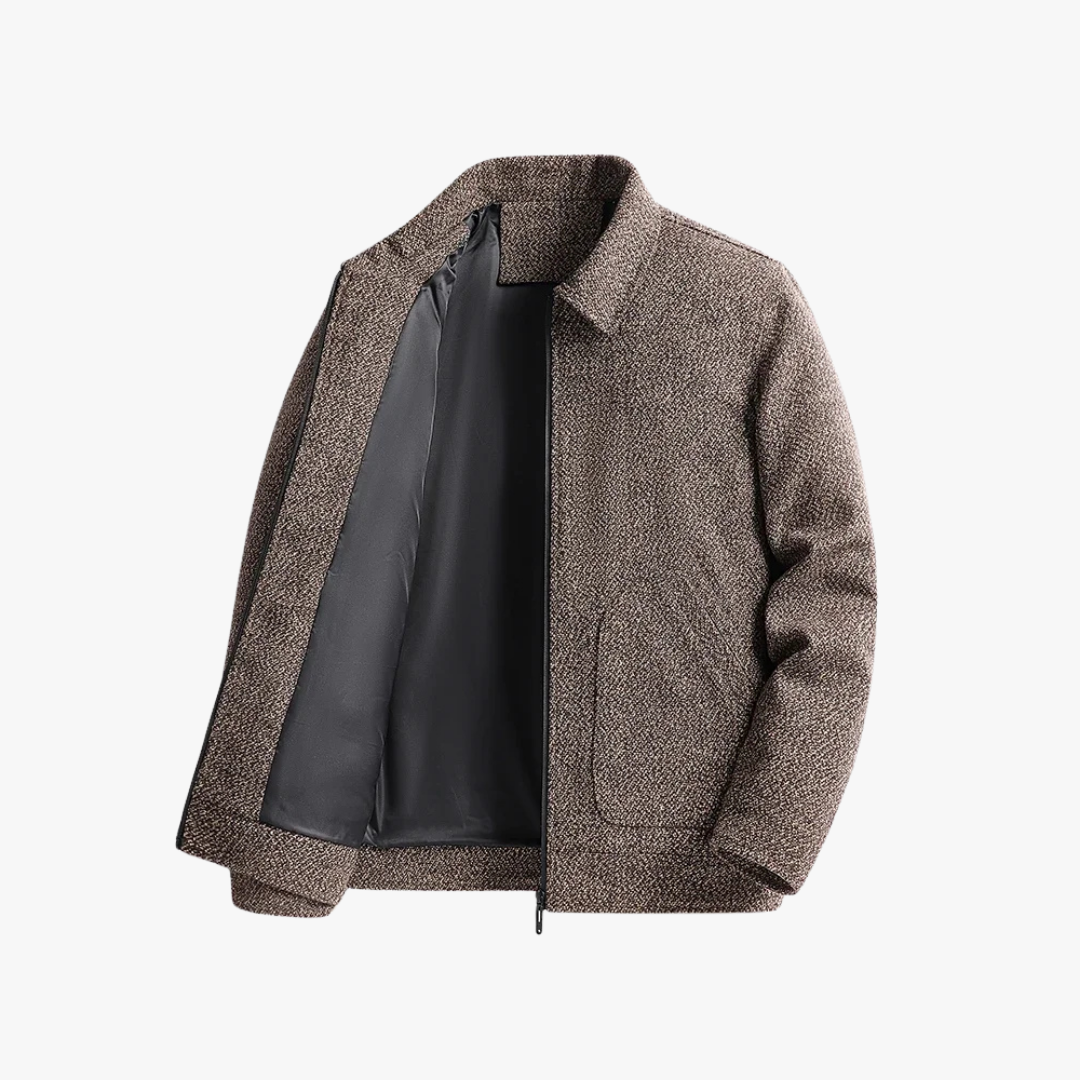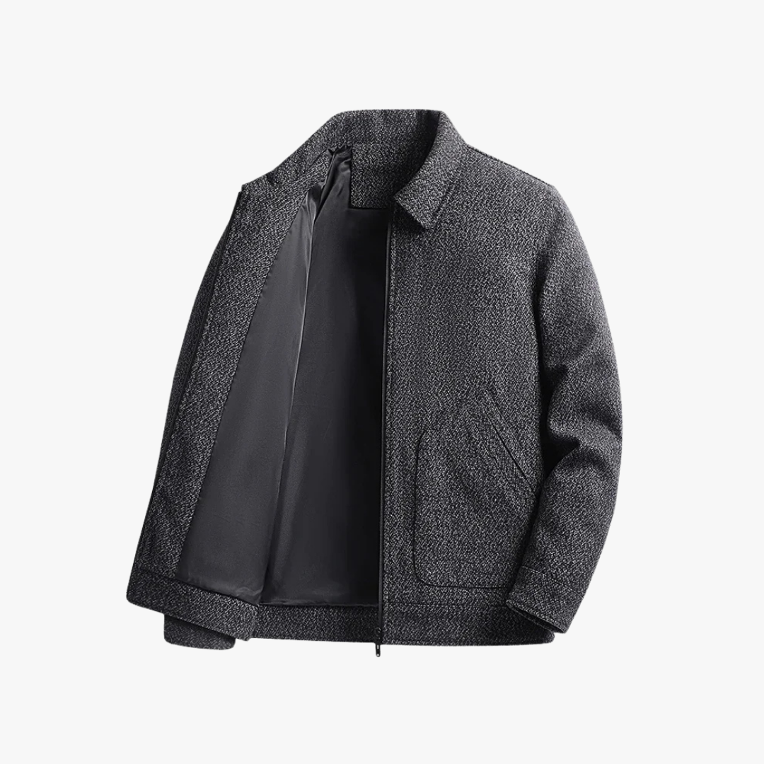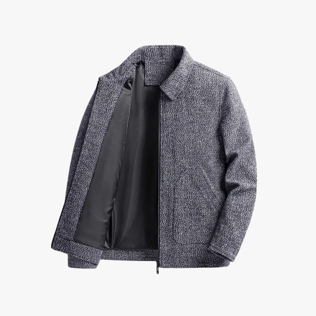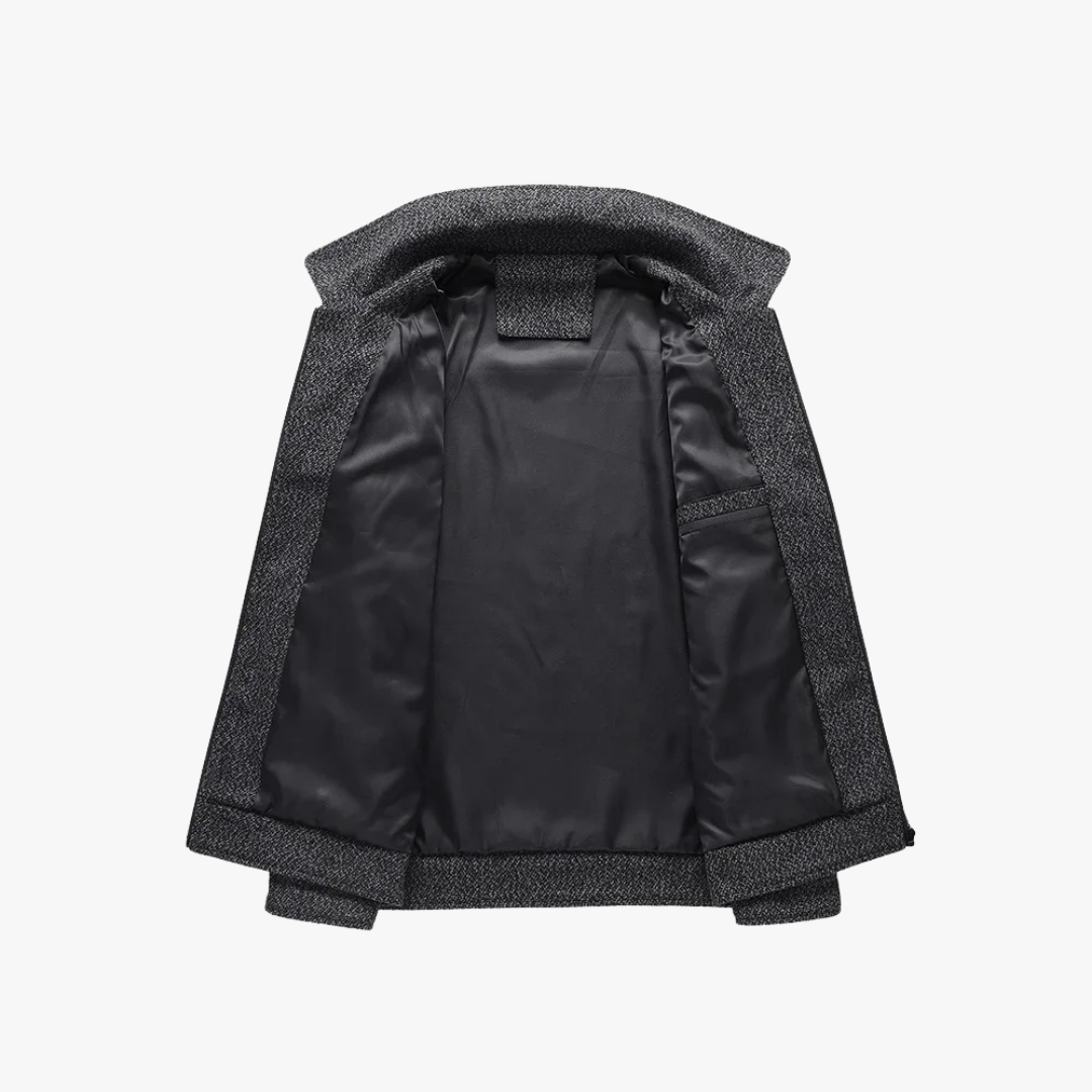 This modern wool-textured jacket combines a sleek and minimalist design with practical features. The zip-up front ensures easy wear, while the smooth inner lining provides exceptional comfort. Discreet side pockets add functionality, making it an ideal choice for everyday wear.