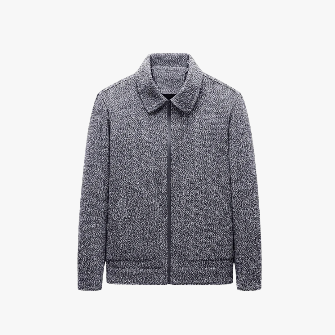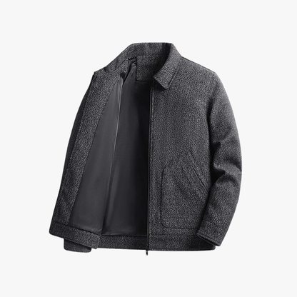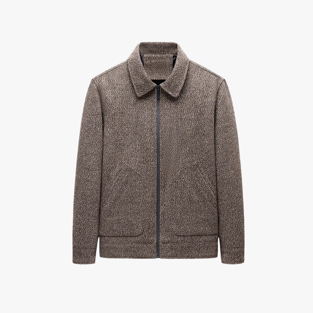 Men's Wool-Textured Jacket - Modern Zip-Up Coat with Discreet Pockets