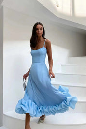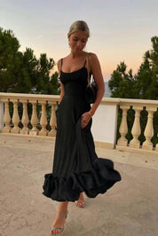 Effortless Elegance: With a timeless flounce design and spaghetti straps, this midi dress elevates any outfit, from casual brunches to evening gatherings.