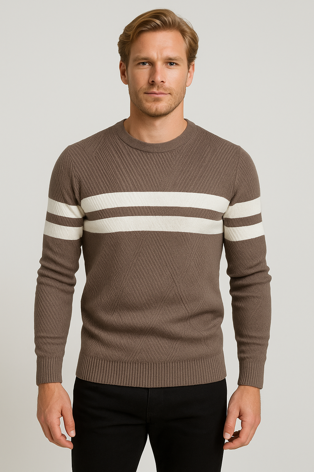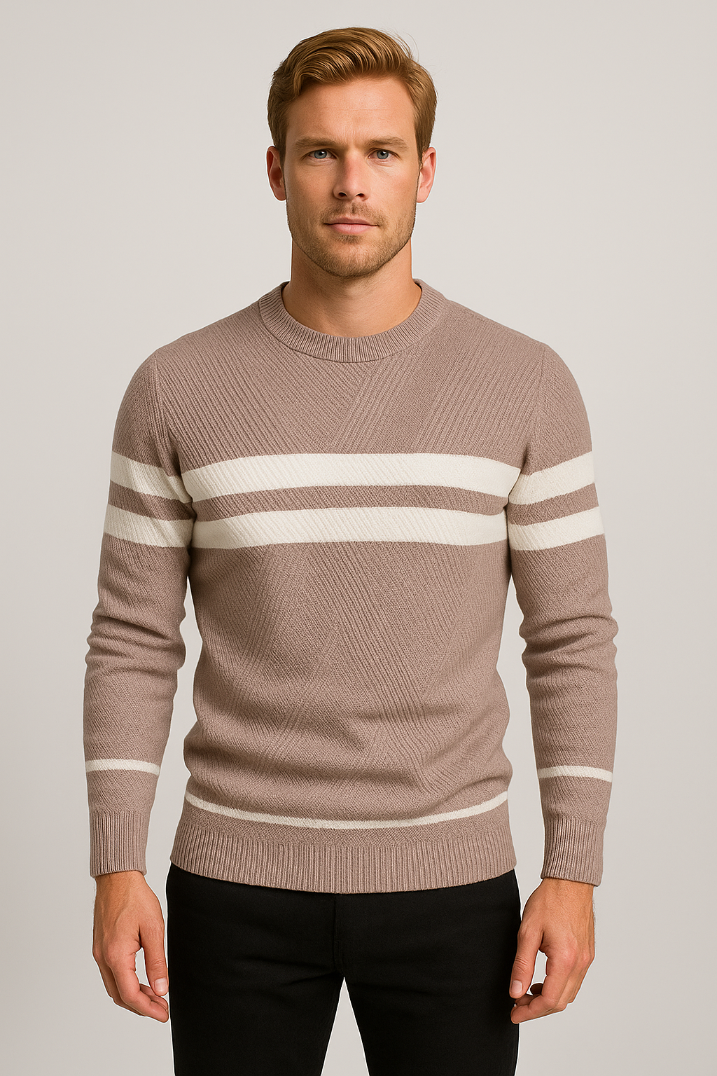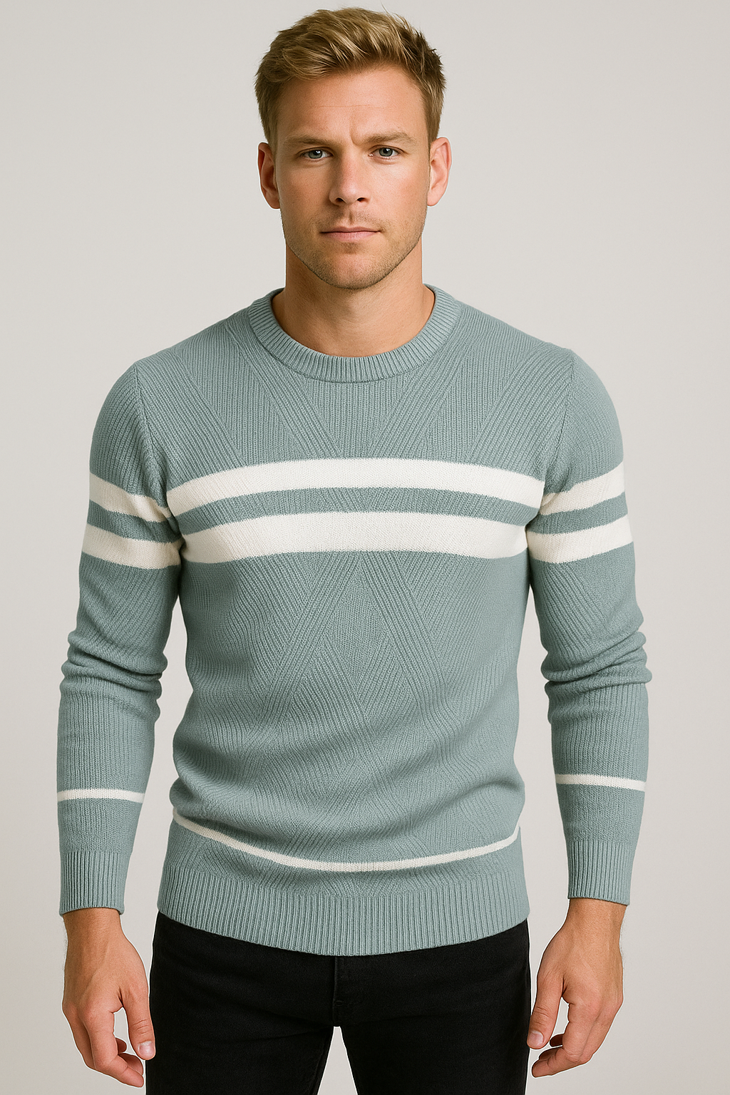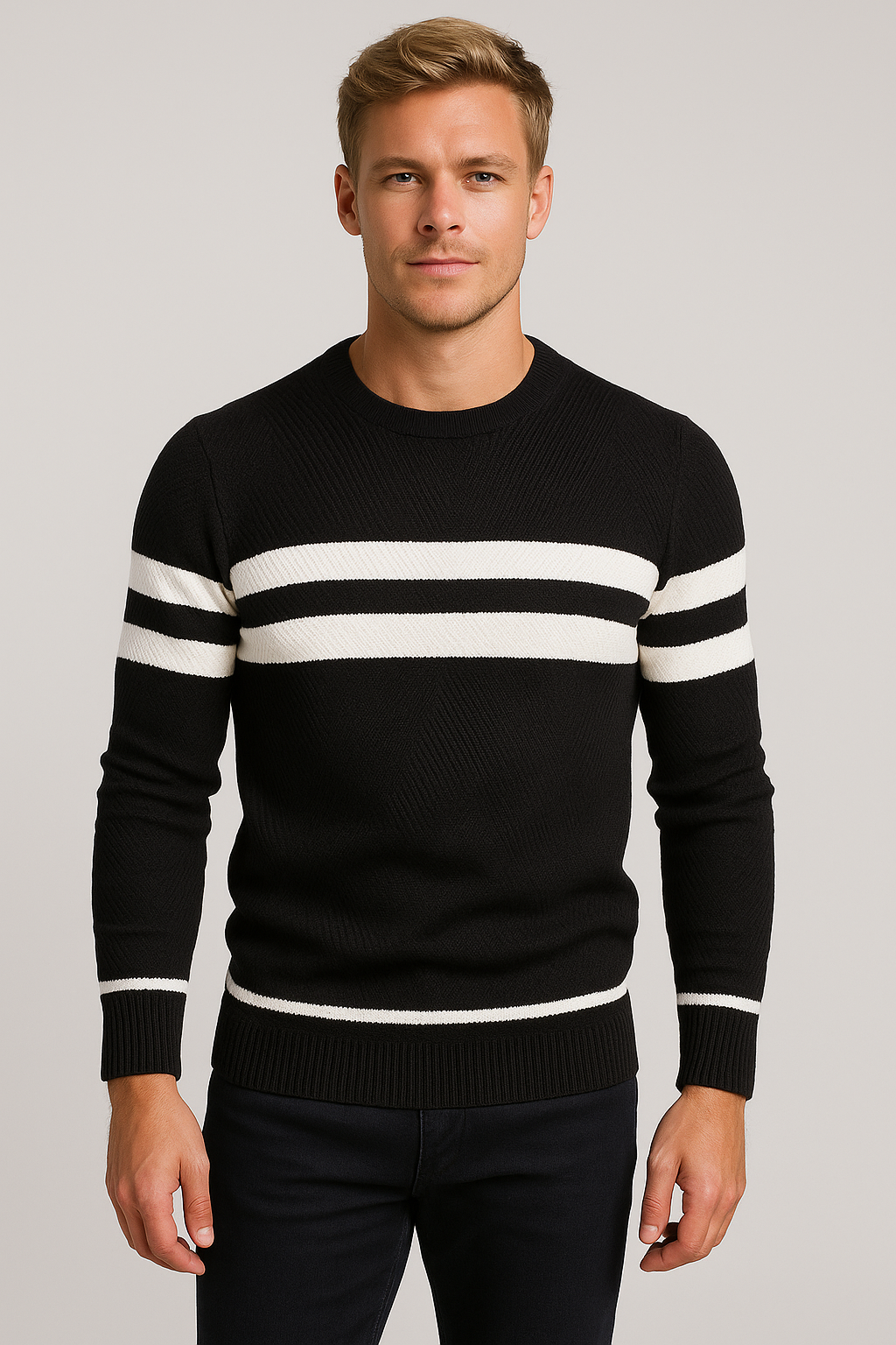 Stylish Striped Slim-Fit Knit Sweater for Modern Elegance
