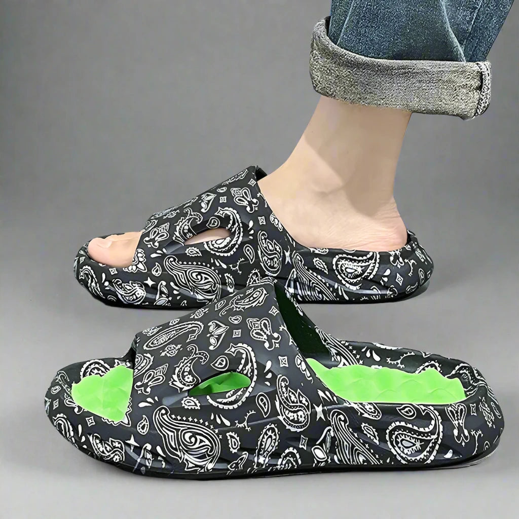 Upgrade your summer style with TrendySlides, designed for both men and women, offering a unique blend of fashion and comfort. These anti-slip flip-flops feature a stylish printing design and a massage footbed for ultimate relaxation. Ideal for beach outings, casual wear, and everyday activities, these slides provide excellent traction and long-lasting durability. Step confidently into summer with a perfect combination of comfort and trendiness.