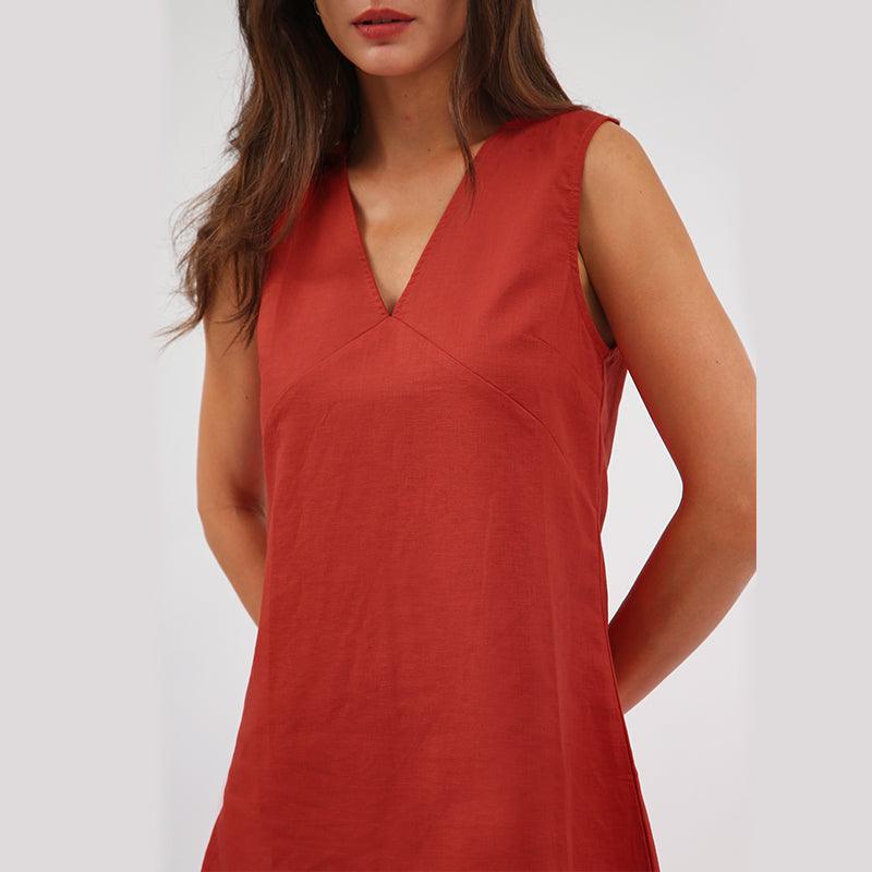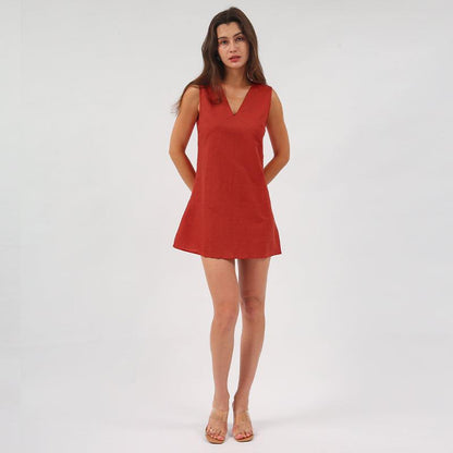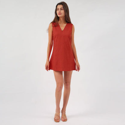 Veronica V-Neck Linen Mini Summer Dress