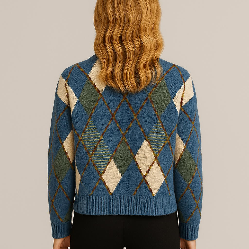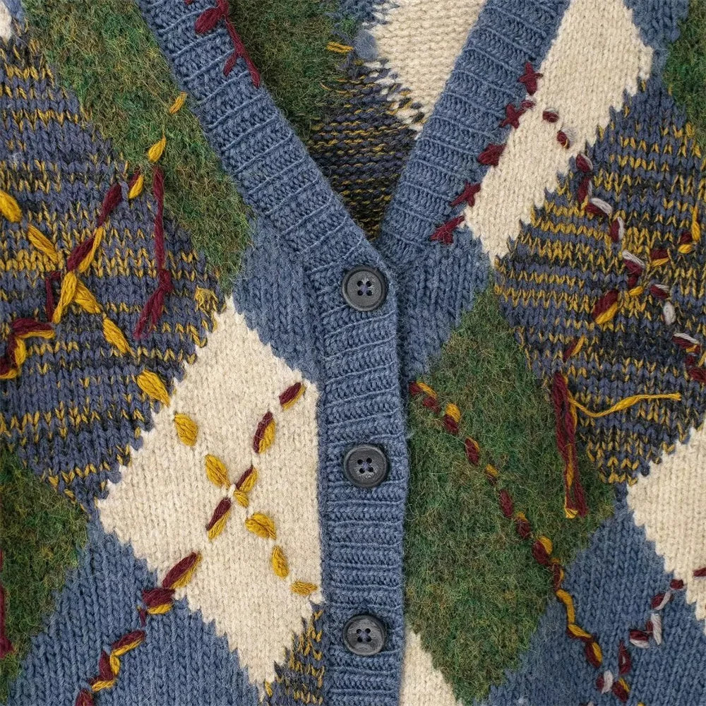 Women's Knitted Jacket - Long Sleeve V-Neck with Diamond Pattern