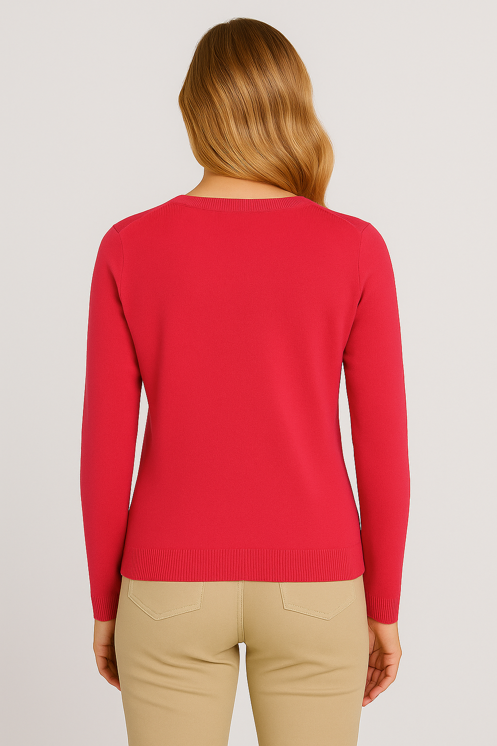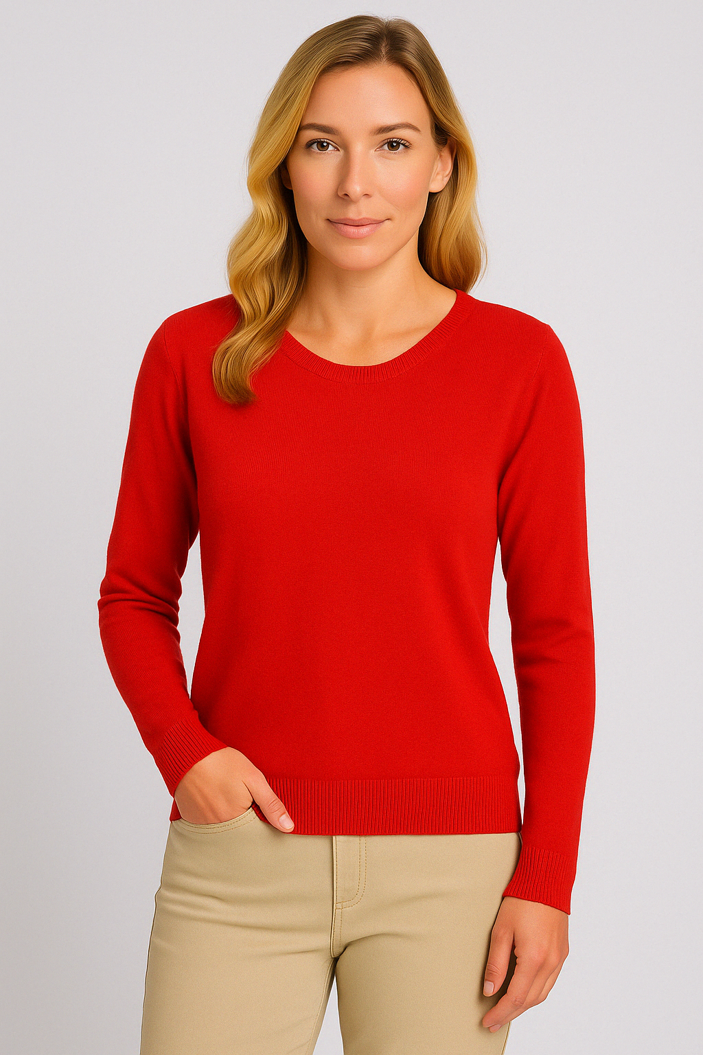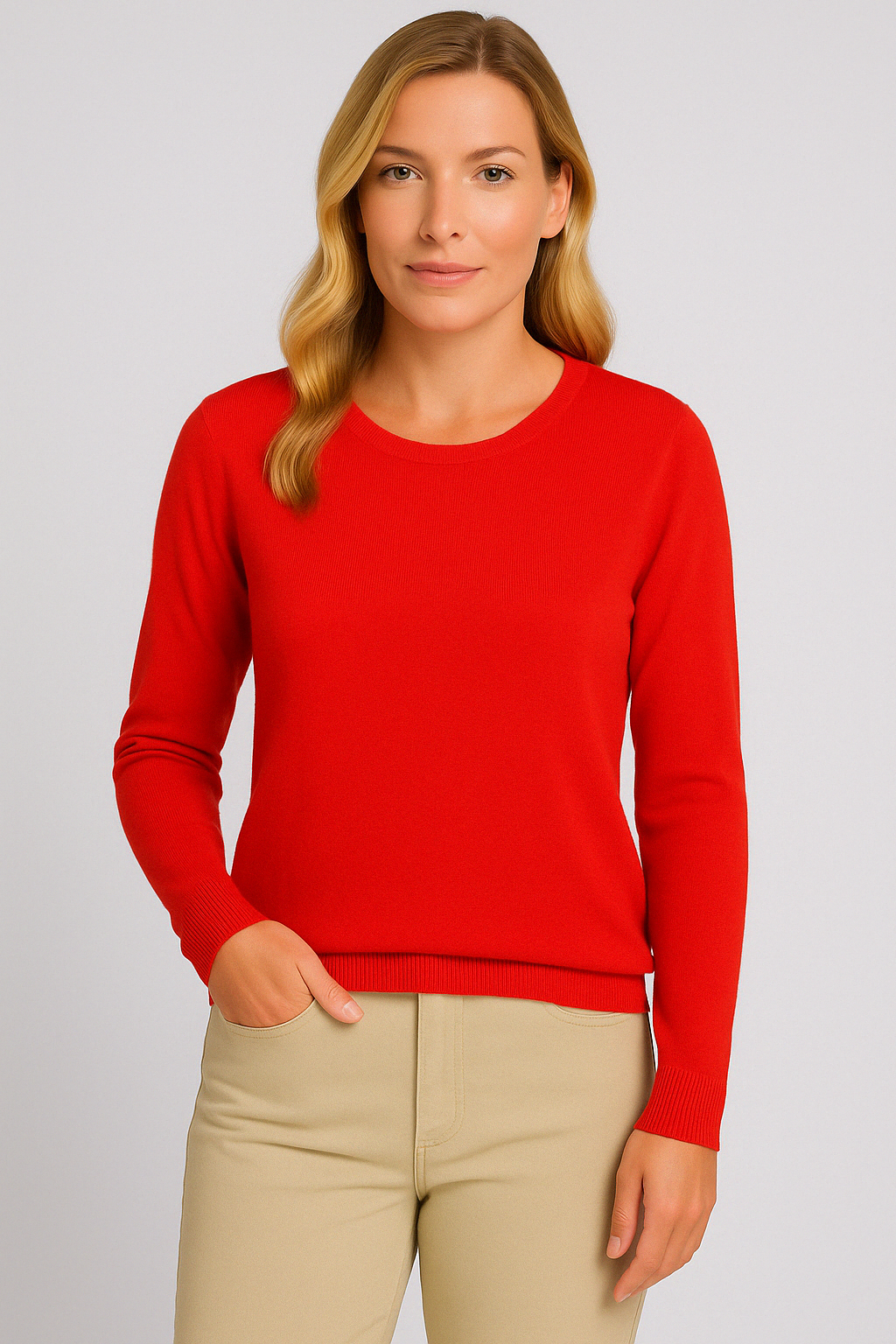 Women's Long Sleeve Knit Sweater - Soft Slim Fit O-Neck Pullover for Fall/Winter