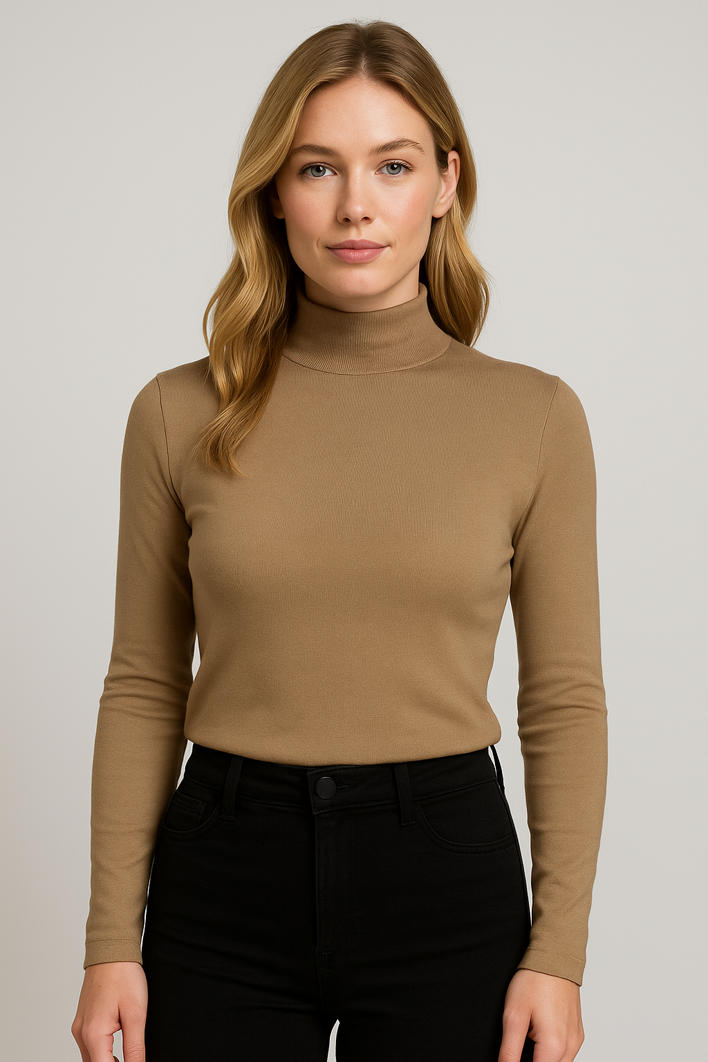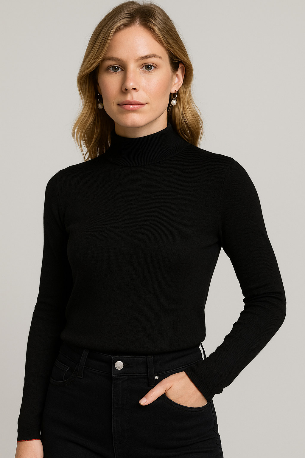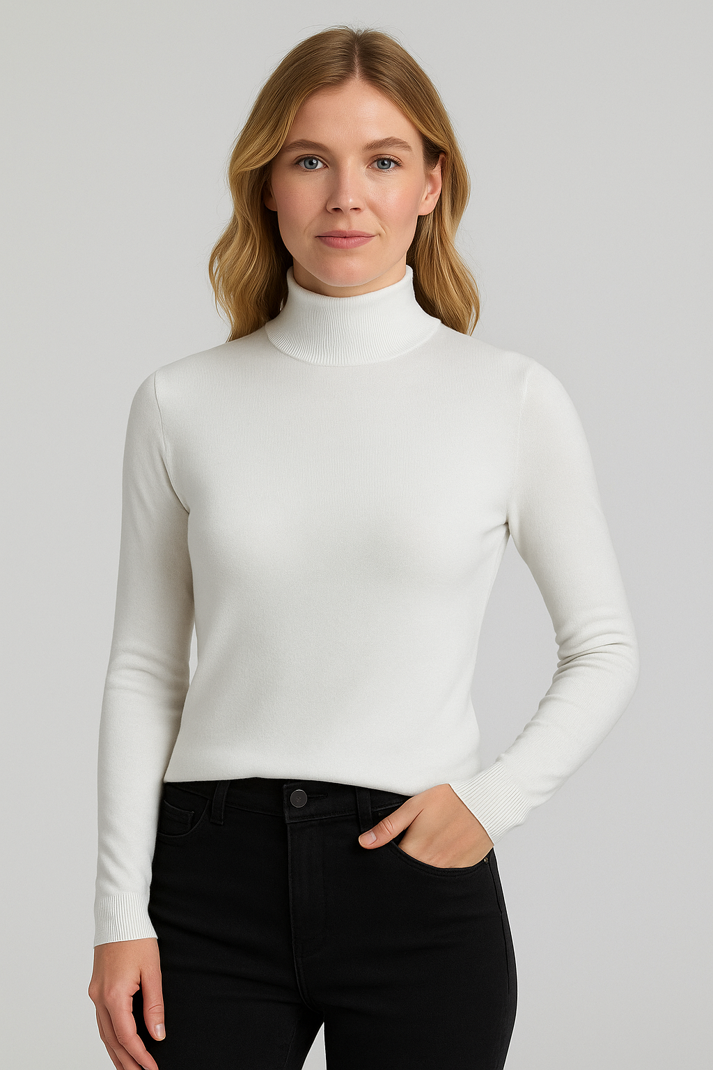 This stylish women's long sleeve ribbed jumper features a half high collar design, perfect for casual autumn wear. The elastic fabric ensures a comfortable fit while accentuating your silhouette. Ideal for layering or wearing on its own, this versatile top can be paired with jeans, skirts, or shorts for a chic look.