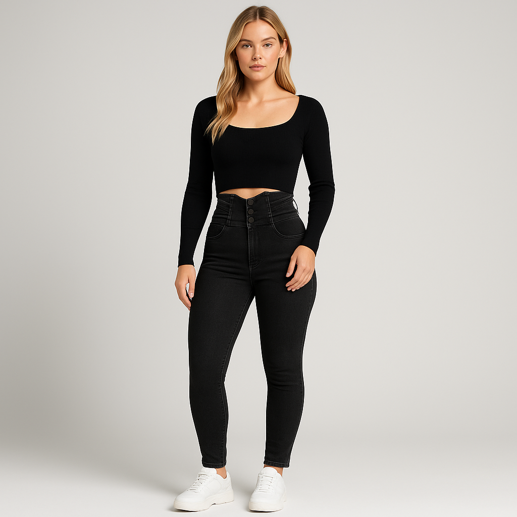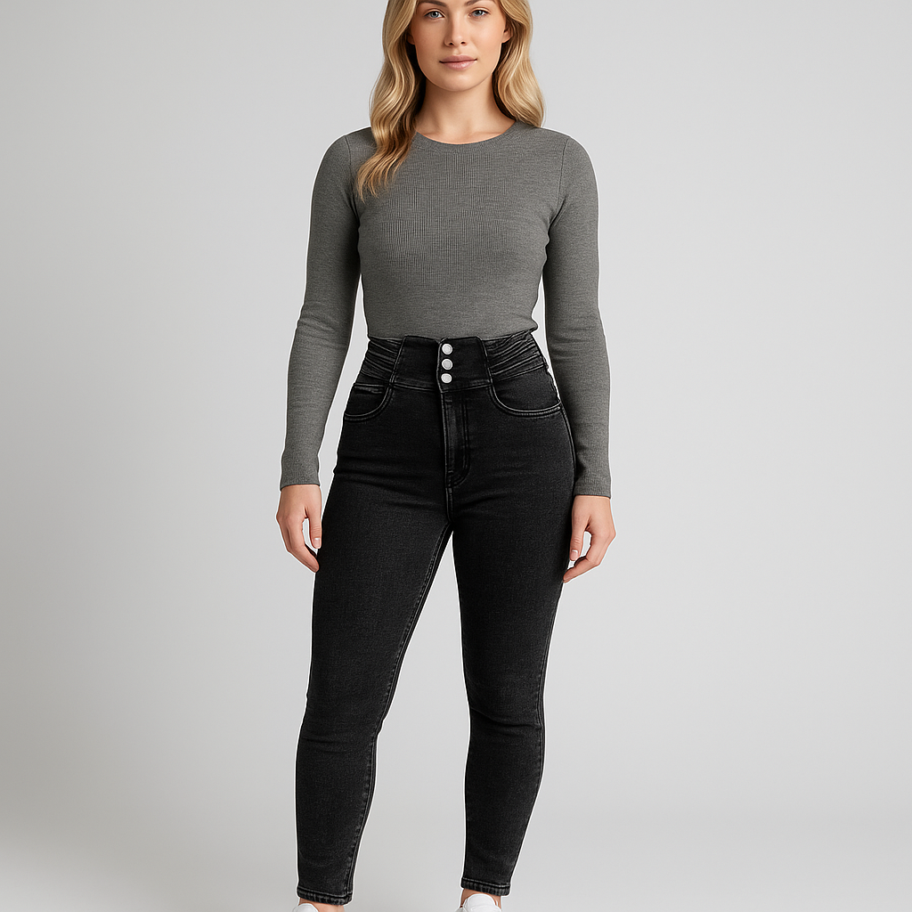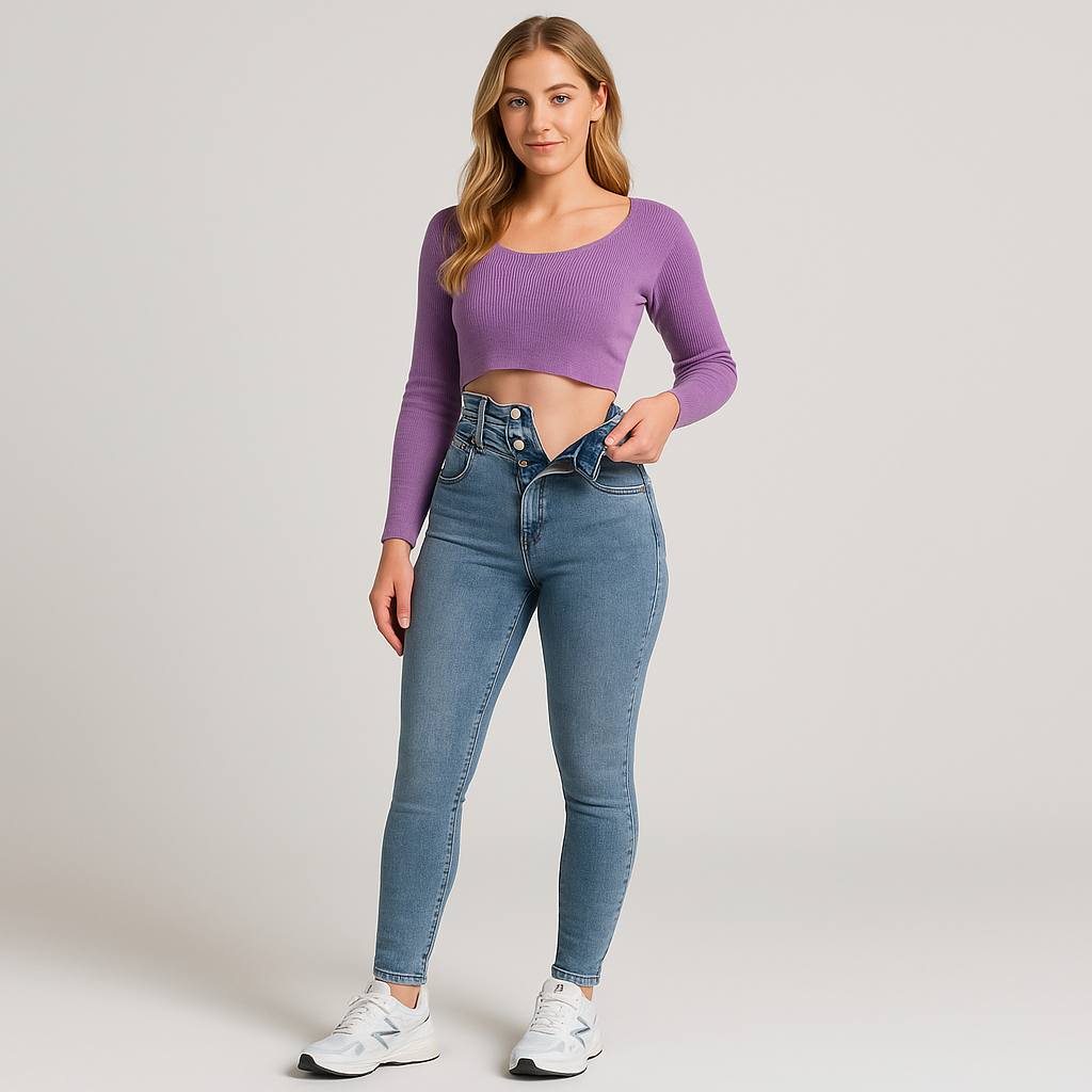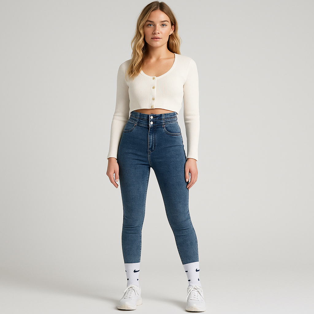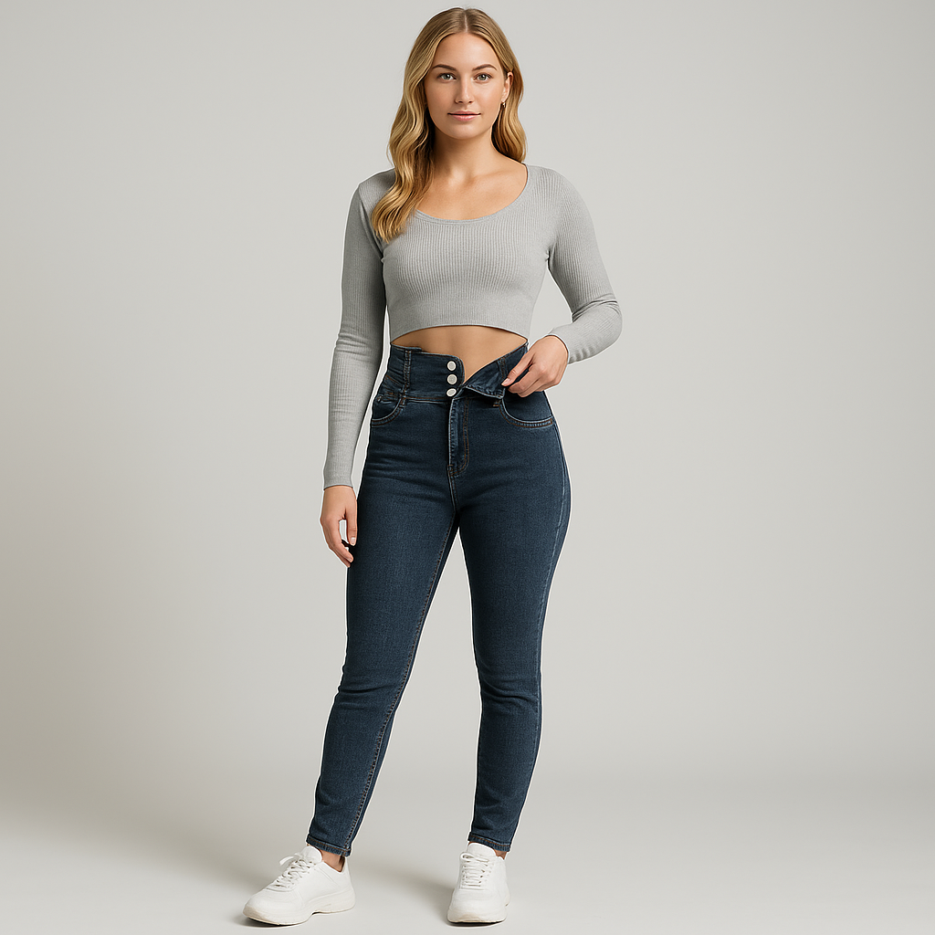 Women's Slim Fit High Street Jeans in Stretch Denim - Trendy Casual Style