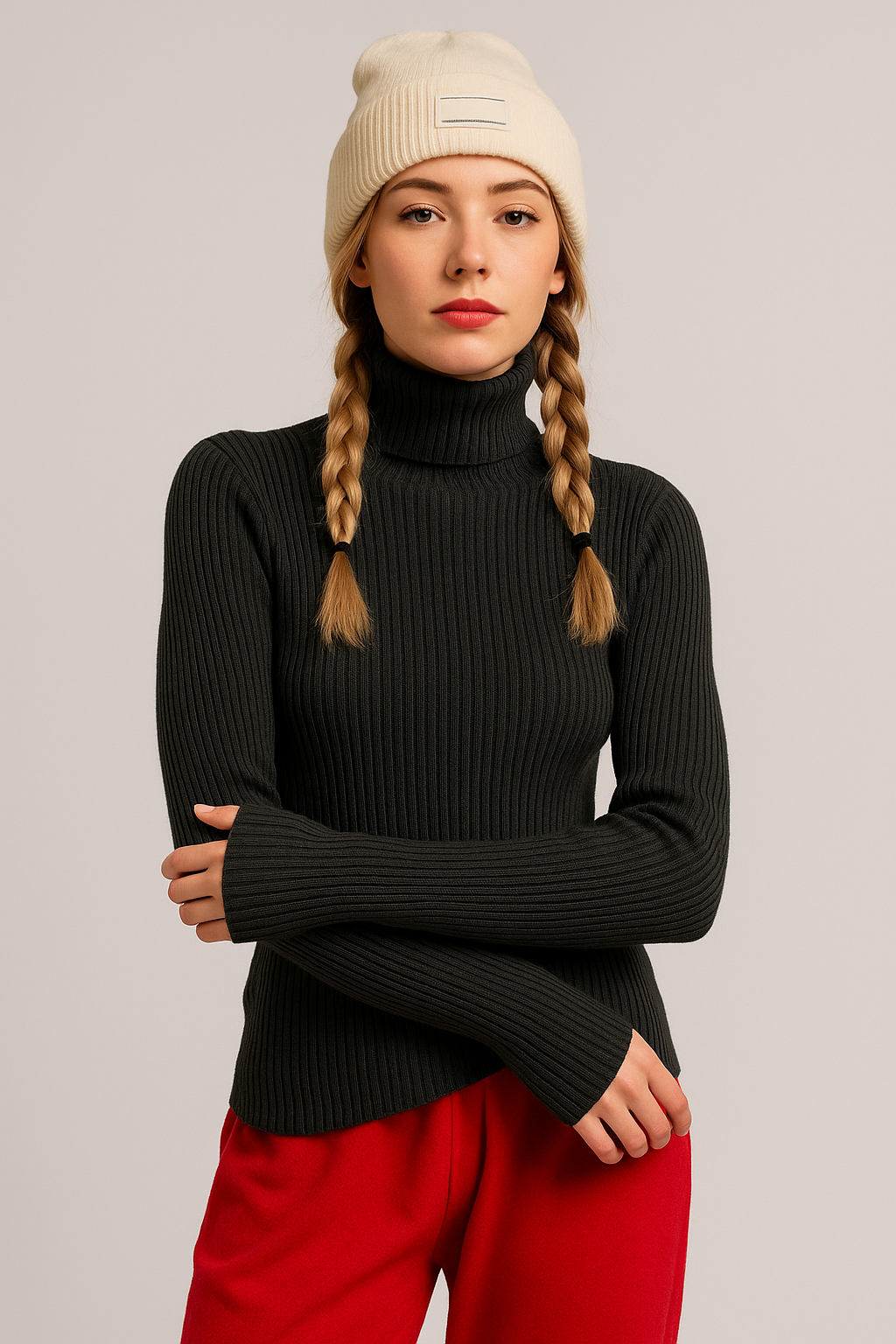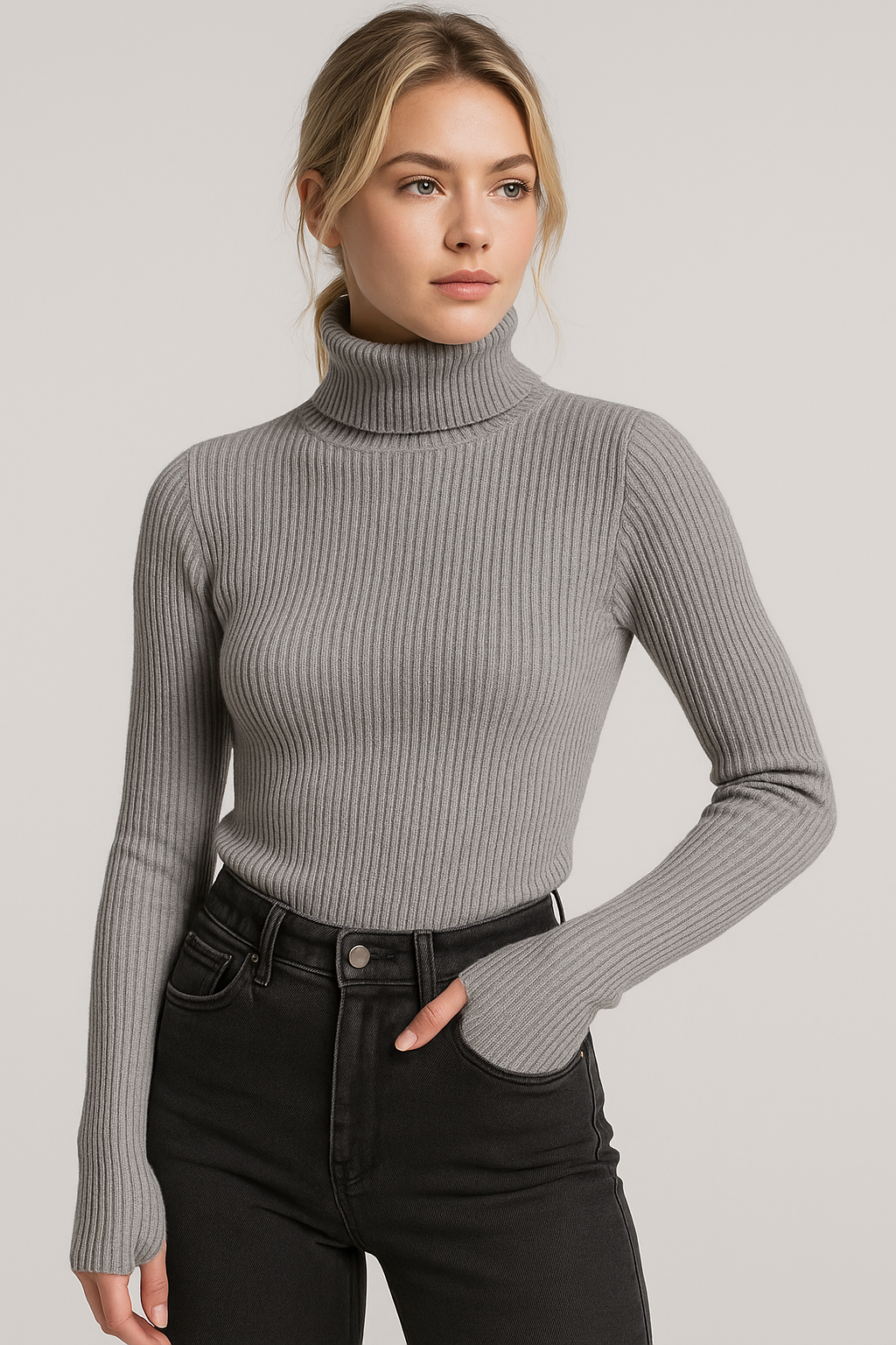Women's Turtleneck Sweater - Cozy Slim Fit Pullover for Winter Styling