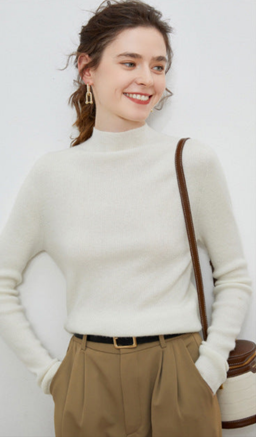 - Half turtleneck design – Adds warmth without bulk